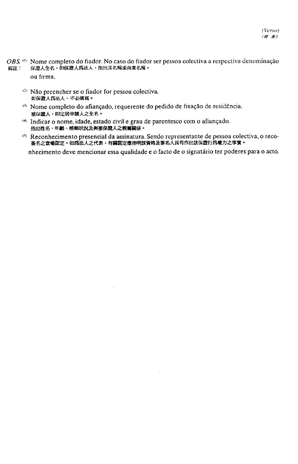 a.指明一居留于本地区之保证人,但须透过本法规所附格式五之文件而为之;