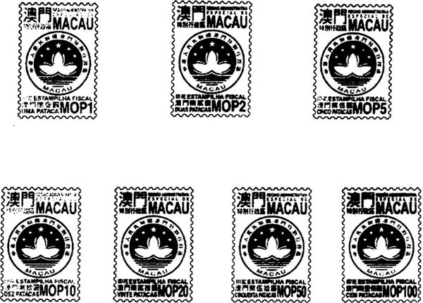 印花税票之面值分别为澳门币壹圆、贰圆、伍圆、拾圆、贰拾圆、伍拾圆及壹佰圆,其式样载于成为本行政法规组成部分的附件一内。