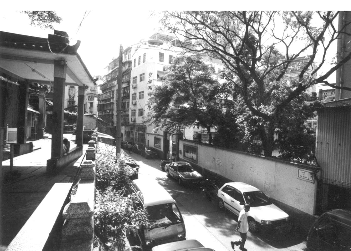 往昔,在這片廣場上,常見漁民結繩曬網,孩子嬉戲踢波。從《澳門:一百五十年前的相片》集中,看到一幀攝於一九四零年沙梨頭土地廟的照片,前景是土地廟前地,臨時蓋搭簡陋的帳篷,用以遮擋阻光,設置繩架、絞具,繩線擱在架上,行列整齊,仿如五線譜,不少頭戴竹織帽的婦女在陽光下進行結繩工作,好像彈奏曲“勞動歌”。此情此景,而今早已消失,只在舊圖片及老一輩居民的記憶中存在。