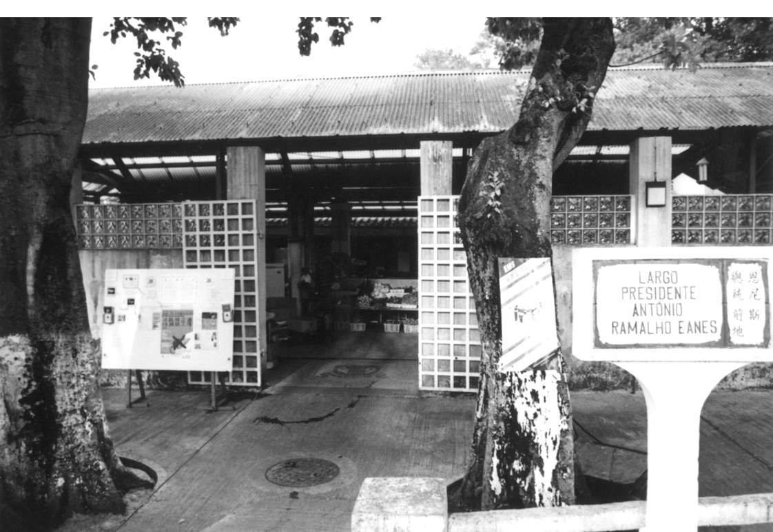路環市政街市所處的地方,原沒有路名,只知由市區進入竹灣馬路的彎角位,門前是一塊曠地,附近設有警署,俗稱“警察前地”;也曾因設公共電視機供公衆觀看,被稱“電視廣場”。至一九八五年間,葡國總統恩尼斯來澳訪問,且行程遠及路環,所以有關方面除將路環街市粉飾一新外,還在街市門前置立一塊路牌,將上址正式命名爲“恩尼斯總統前地”。