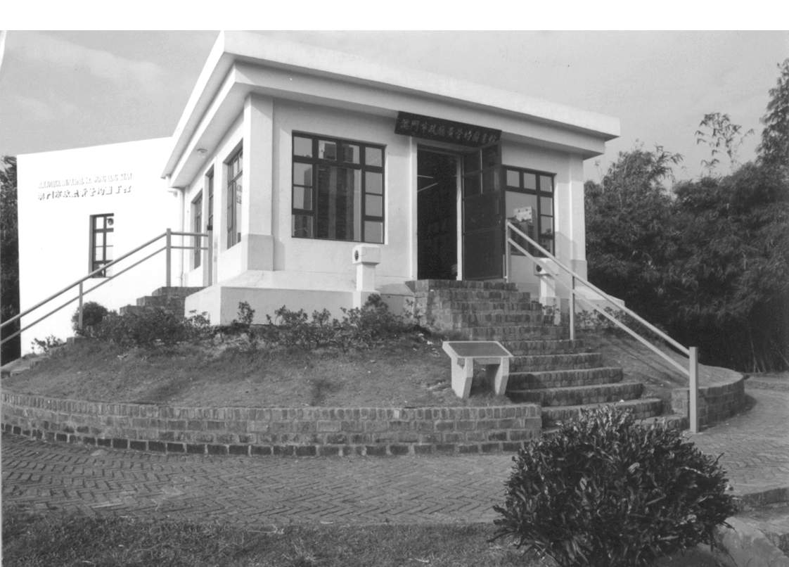 其時,市政廳適逢接獲居澳老華僑黃營均提出捐建圖書館計劃,於是利用這個地方興建圖書館。避雨亭原占地很少,在改建之時,加設地庫,擴大了圖書館面積,可以容納數十人閱讀。這項工程耗資一百五十萬元,於九六年四月廿六日落成啓用。