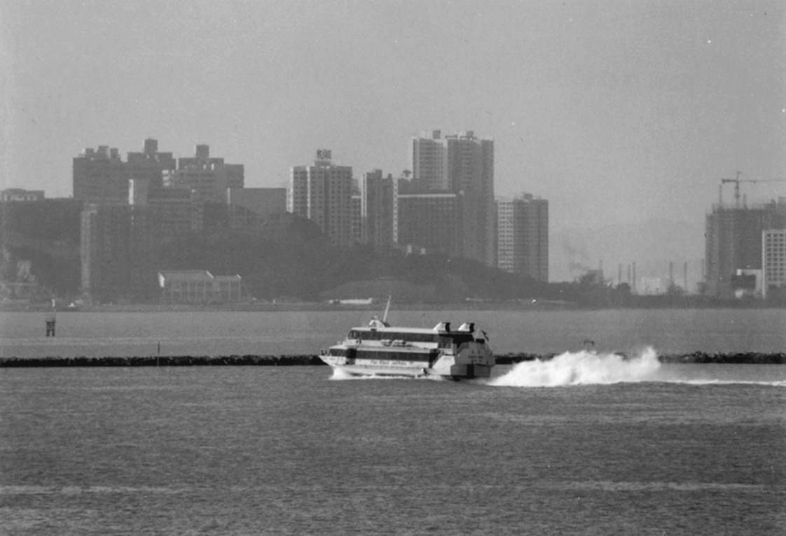 說起來,第一艘水翼船“路環”號投入港澳線服務應始自一九六四年三月十五日,迄今已有三十年歷史,這是港澳航運史的一個轉捩點。目前,海上客運業務蓬勃開展,有四家公司承包服務。其中遠東船務公司有噴射船十六艘,爲目前世界上最龐大的噴射船隊,每艘載客二百六十八人: