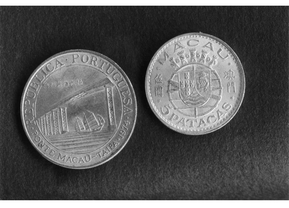 一九七四年,當局發行紀念澳氹大橋落成銀幣,是紀念幣的第一款,面額二十元,圖案正面是大橋,背面是葡國國徽。這枚銀幣曾經一再升值一、二倍。