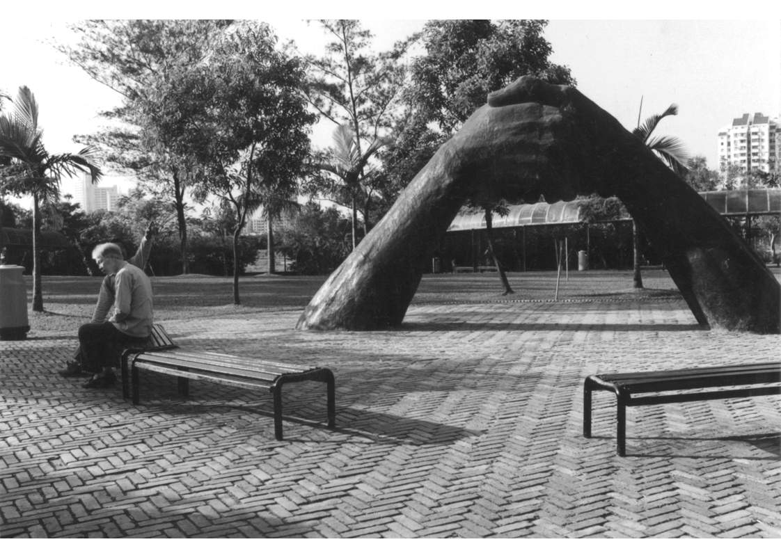 這座紀念物名《永遠的握手》,兩隻巨手從地面斜伸出來,互相緊握,表示友誼永固。這銅鑄雕塑作品,高度七米,寬度四米,重達四噸,造價二百萬元。由於體積龐大,構成巨大三角形,擺放在公園高崗空曠地上,頗爲適合,配襯砌紅磚圖案地面,形象突出,惹人注目。